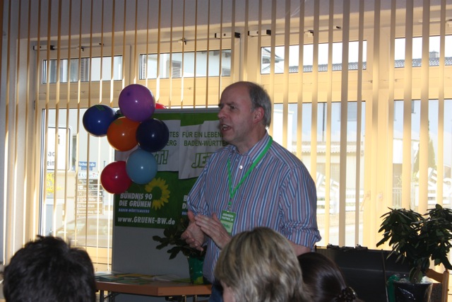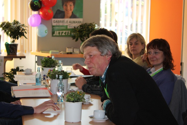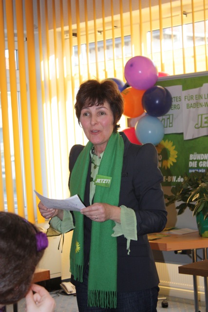 Die Grüne Landtagskandidatin Gabriele Aumann erinnerte in ihrer kurzen Rede an ein paar Anekdoten aus dem früheren Ortsverband. Sie verwies ebenfalls auf die guten Umfragewerte für die Grünen. Gabriele Aumann rief alle Anwesenden auf, sich in den letzten Tagen vor der Wahl zu engagieren.