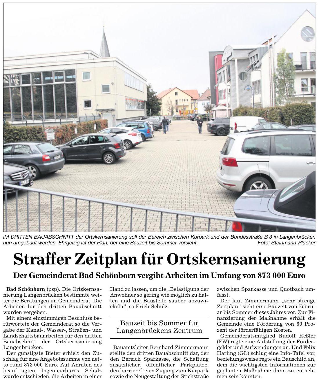 BNN Bruchsaler Rundschau zur Ortskernsanierung Langenbrücken BNN 26.01.2018 S.20 Straffer Zeitplan für Ortskernsanierung