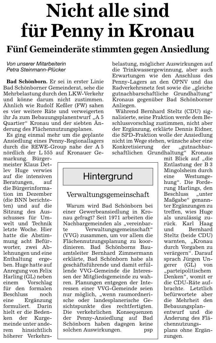 BNN Bruchsaler Rundschau 26.01.2018 S.20 Nicht alle sind für Penny BNN 26.01.2018 Nicht alle sind für Penny