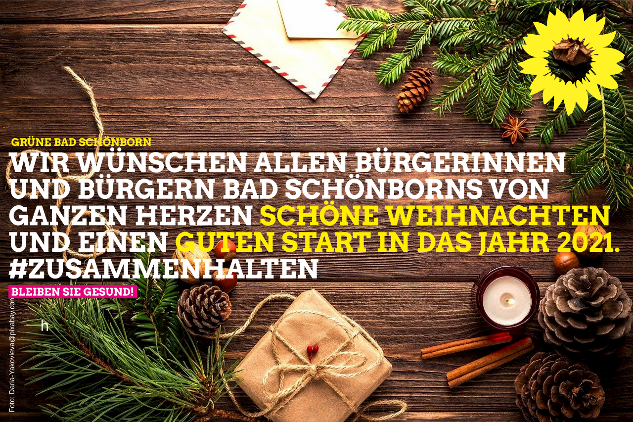 Die Grünen Bad Schönborns wünschen allen Bürgerinnen und Bürgern Bad Schönborns eine schöne und ruhige Weihnachtszeit im engsten Kreise der Familie und einen guten Start in das Jahr 2021.